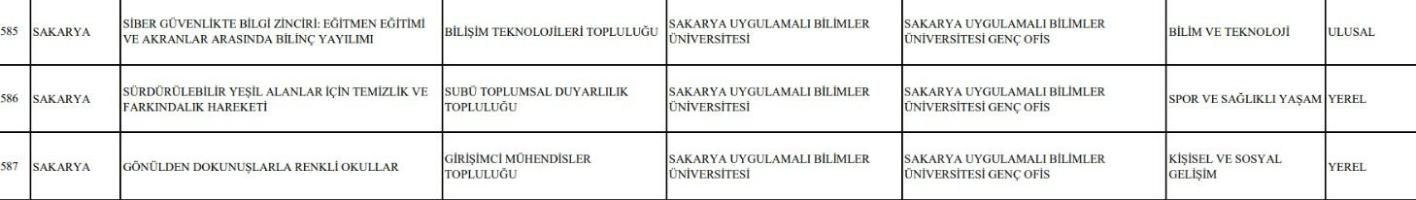 Sakarya Uygulamalı Bilimler Üniversitesi’nin (SUBÜ) üç öğrenci topluluğu, hazırladıkları projelerle Gençlik ve Spor Bakanlığı’nın ‘Üniversite Öğrenci Toplulukları İş Birliği ve Destek Programı (ÜNİDES)’ kapsamında desteklenmeye hak kazandı. Destek kazanan projeler arasında Girişimci Mühendisler Topluluğu’nun ‘Gönülden Dokunuşlarla Renkli Okullar’ başlıklı projesi, Bilişim Teknolojileri Topluluğu’nun ‘Siber Güvenlikte Bilgi Zinciri: Eğitmen Eğitimi ve Akranlar Arasında Bilinç Yayılımı’ başlıklı projesi ve Toplumsal Duyarlılık Topluluğu’nun ‘Sürdürülebilir Yeşil Alanlar İçin Temizlik ve Farkındalık Hareketi’ başlıklı projesi yer aldı. Bakanlık üç projeye yaklaşık 200 bin TL katkı sağladı. Daha önce SUBÜ Genç Yeşilay Topluluğu’nun hazırladığı ‘Umut Atölyesi’ isimli proje de ÜNİDES kapsamında 50 bin TL destek almıştı.