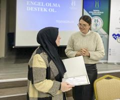 Sakarya Uygulamalı Bilimler Üniversitesi (SUBÜ) Genç Sağlıkçılar Topluluğu, Sağlıklı ve Hareketli Yaşam Topluluğu ve Engelsiz Üniversite Koordinatörlüğü iş birliğinde “Engelleri Aşmak İçin El Ele” isimli bir etkinlik düzenledi. Engelliler Haftası kapsamında düzenlenen etkinlikte Akyazı Mesleki ve Teknik Anadolu Lisesi’nde öğrenim gören öğrencilerin engelli bireyleri anlamaları ve farkındalık kazanmaları amacıyla çeşitli faaliyetler yürütüldü. Sunum ile başlayan etkinlikte Akyazı Belediyesi’nde çalışan görme engelli Şevval Mert de misafir konuşmacı olarak yer aldı. Sunum sonrası engelli bireylerin yaşadıkları zorlukları deneyimlemek amacıyla engelli parkuru oluşturuldu. Parkurda lise öğrencilerinden bedensel ve görme engelliler gibi önlerine çıkan engelleri geçmeleri istendi. Etkinlik sonunda katılımcılara teşekkür belgesi takdim edildi.