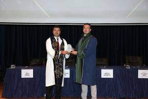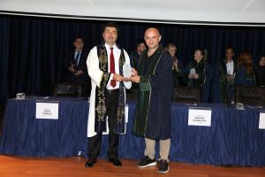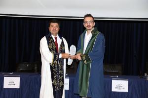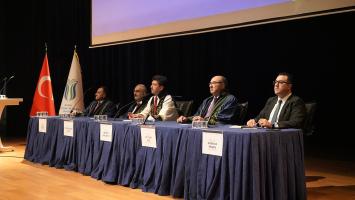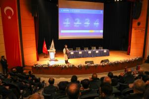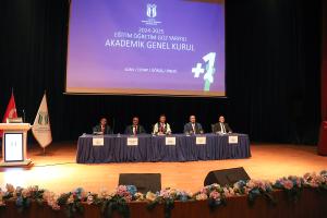 Eğitim-öğretim faaliyetlerine ilişkin bir sunum yapan Rektör Yardımcısı Prof. Dr. Sinan Serdar Özkan, toplam öğrenci sayısının 31 bin 563’e ulaştığını, uzaktan eğitimde ise 21 dersin çekimlerinin tamamlandığını ve 8 derste çekimlerin devam ettiği bilgisini verdi. +1 Eğitim Modeli kapsamında 2023-2024 Akademik Yılı’nda 3 bin 414 öğrencinin iş dünyasıyla buluştuğunu aktaran Özkan, eğitim-öğretim hedeflerinin lisansüstü eğitimde alan dışı öğrenci öğrenci kabulünün sağlanması, disiplinler arası çalışma, aktif öğrenmenin sağlanması, öğrencilere etkin kariyer danışmanlığı yapılması ve çift ana dal ve yan dal sayısının artırılması olduğunu söyledi.