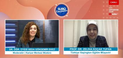 Sakarya Uygulamalı Bilimler Üniversitesi (SUBÜ) tarafından düzenlenen SUBÜ Konuşmaları'nın 61'inci konuşmacısı Türkiye Vaşington Eğitim Müşaviri Prof. Dr. Zeliha Koçak Tufan oldu. 'Kaostan Düzen Çıkar (mı?) başlığıyla düzenlenen söyleşinin moderatörlüğünü SUBÜ Kariyer Planlama ve İnsan Kaynakları Uygulama ve Araştırma Merkezi Müdürü Dr. Öğr. Üyesi Seda Gökdemir Ekici üstlendi. Söyleşide; ‘Yurtdışında Eğitim ve Çalışma Trendleri’, ‘Türkiye’deki İmkânlar ve Araştırma’, ‘Türkiye’de ve Dünya Genelinde Fırsatları Takip Etme’ konuları üzerinde durulurken; ‘Amerika Birleşik Devletleri’ne eğitim için gitmek isteyenlerin nedenleri ve hedefleri nelerdir?’, ‘Çalışmak istenen alanda önceden plan yapma ve araştırmanın önemi nedir?’ sorularına da yanıt arandı. Programın tamamı üniversitenin YouTube kanalı SUBÜ Haber’den istenildiği zaman izlenebiliyor.
