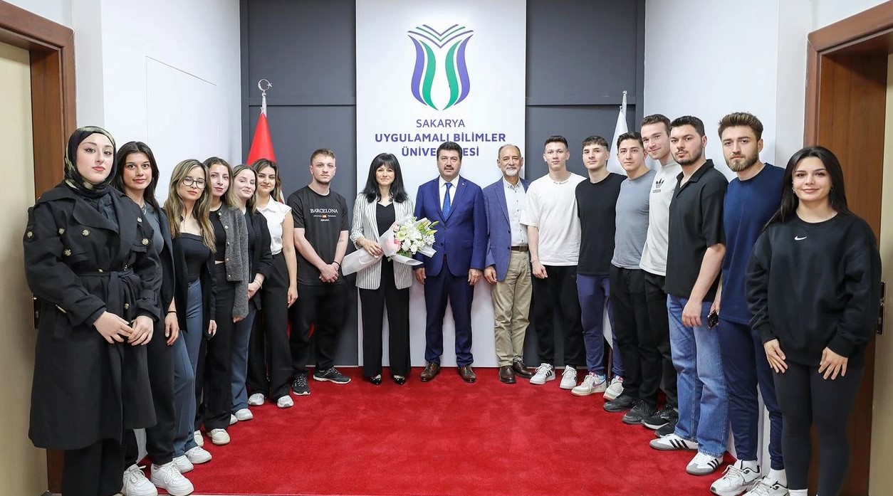 Sakarya Uygulamalı Bilimler Üniversitesi (SUBÜ) Rektörü Prof. Dr. Mehmet Sarıbıyık, Türkiye Üniversite Sporları Federasyonu (TÜSF) tarafından düzenlenen Üniversiteler Ligi Türkiye Karate Şampiyonası ve Üniversiteler Ligi Türkiye Taekwondo Şampiyonası’nda derece kazanan SUBÜ öğrencilerini ağırlayarak tebrik etti. Gerçekleşen ziyarette sporcu öğrencilere Spor Bilimleri Fakültesi Dekanı Prof. Dr. Nevzat Mirzeoğlu, Sağlık Kültür ve Spor Daire Başkanı Dr. Orhan Yılmaz ile sporcu antrenörleri Öğretim Görevlisi Esra Atış ve Ayşe Pınar Demir eşlik etti. Elde edilen başarılar için sporcuları kutlayan Rektör Sarıbıyık, sporcu antrenörleri Öğretim Görevlisi Esra Atış ve Ayşe Pınar Demir’e günün anısına çiçek takdim etti. SUBÜ’lü öğrenciler Üniversiteler Ligi Türkiye Karate Şampiyonası’nı yedisi altın, ikisi gümüş, altısı bronz olmak üzere 15 madalya ve biri birincilik, biri üçüncülük olmak üzere 2 kupa ile tamamlamış, Üniversiteler Ligi Türkiye Taekwondo Şampiyonası’nda ise üç bronz madalyanın sahibi olmuştu.