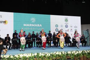 Marmarakaf 24’te KARMER tarafından katılımcı öğrencilere online olarak kişilik envanteri testi yapıldı. Teste katılan öğrenciler, kişilik özelliklerinin hangi mesleklerle uyumlu olduğunu görebilme fırsatı buldu. SUBÜ’nün Dil Eğitim-Öğretim Uygulama ve Araştırma Merkezi’nde (SADEM) Türkçe öğrenen uluslararası öğrenciler ise fuara katılım sağlayarak ülkelerine ait halk oyunlarını sergiledikleri bir dans gösterisi sundular. SADEM öğrencilerinin sergilediği dans gösterisi izleyenlerden alkış aldı.