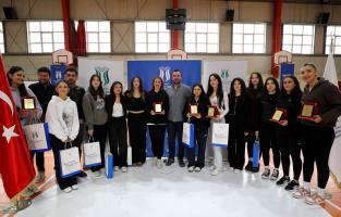 Sakarya Uygulamalı Bilimler Üniversitesi (SUBÜ) Sağlık Kültür ve Spor Daire Başkanlığı ile Spor Bilimleri Fakültesi koordinasyonunda, Türkiye Üniversite Sporları Federasyonu (TÜSF) tarafından düzenlenen üniversiteler arası şampiyonalarda derece elde eden SUBÜ sporcularına yönelik bir program düzenlendi. Spor Bilimleri Fakültesi Kapalı Spor Salonu’nda gerçekleştirilen program kapsamında, 2025 yılı içerisinde üniversiteler arası şampiyonalarda 13 farklı spor dalında derece elde eden 84 sporcuya plaket ve hediyeleri takdim edildi. Programa SUBÜ Rektörü Prof. Dr. Mehmet Sarıbıyık, Rektör Yardımcısı Prof. Dr. Oğuz Türkay, Genel Sekreter Doç. Dr. Gökhan Ergen, Spor Bilimleri Fakültesi Dekanı Prof. Dr. Murat Çilli, Ferizli Meslek Yüksekokulu Müdürü Dr. Öğretim Üyesi Pınar Çınar, Sağlık Kültür ve Spor Daire Başkanı Dr. Orhan Yılmaz ile Sağlık Kültür ve Spor Daire Başkanlığı ve Spor Bilimleri Fakültesi personeli ile öğrenciler katıldı. Programda konuşan SUBÜ Rektörü Prof. Dr. Mehmet Sarıbıyık, “Üniversiteler arası şampiyonalarda başarı elde eden tüm sporcularımızı tebrik ediyorum. Bu süreçte emeği bulunan Spor Bilimleri Fakültesi dekanımız, fakülte yönetimimiz ve akademisyenlerimiz ile Sağlık Kültür ve Spor Daire Başkanımıza ve personeline teşekkür ediyorum” dedi.