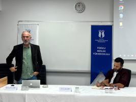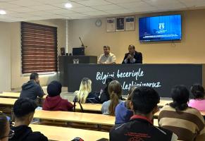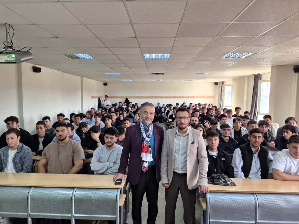 Hendek Meslek Yüksekokulu öğrencileri, ilk ders etkinlikleri kapsamında Rektör Prof. Dr. Mehmet Sarıbıyık ve Sakarya 2’inci Organize Sanayi Bölgesi Yönetim Kurulu Başkanı Şükrü Bodur ile bir araya geldi. Sakarya MYO’da ilk ders, ‘Günümüz Dünyasında Kariyer İnşa Etmek’ başlığıyla Rektör Danışmanı Dr. Öğretim Üyesi Rüstem Keleş tarafından verildi. Bilişim Teknolojileri MYO Güz Yarıyılı’na, Eğitimci ve Yazar Yılmaz Çiğdem’in verdiği ‘Umudun Adı Gazze’ konulu ilk dersle başladı. Denizcilik MYO’daki ilk ders etkinliği ise Sakarya Büyükşehir Belediyesi İtfaiye Dairesi Başkanı Vedat Selamet tarafından ‘Afetlere Hazırlık ve İtfaiyecilik Mesleği’ başlığıyla gerçekleştirildi. Ferizli MYO’da ‘İlk Dersim Filistin’ başlığıyla geniş katılımlı bir etkinlik düzenlendi. Program, Karabük Üniversitesi Öğretim Üyesi Prof. Dr. Adem Sağır ve Sakarya Üniversitesi Öğretim Üyesi Doç. Dr. Yıldırım Turan’ın sunumlarıyla gerçekleştirildi. Etkinliğe ilçe protokolü de katılım sağladı. Geyve MYO, ilk ders etkinliğinde Sakarya Serbest Muhasebeci Mali Müşavirler Odası Başkanı Erdinç Atalay’ı ağırladı. Kaynarca Seyfettin Selim MYO’nun ilk dersini SAMİKOP Yönetim Kurulu Başkanı Lütfi Sunman verdi. Pamukova İlçe Tarım ve Orman Müdürlüğü Müdürü Fatih Ahmet Balıca, Pamukova MYO’nun ilk dersini işledi. Sapanca MYO Medya ve İletişim Programı’nın ilk ders etkinliğinde Sakarya Güzel Sanatlar Derneği Başkanı ve Fotoğraf Sanatçısı Ünal Dabak öğrencilerle buluştu. Sapanca Turizm MYO’da 4 farklı programda ayrı ayrı ilk ders etkinlikleri gerçekleştirildi. Aşçılık ile Pastacılık ve Ekmekçilik Programlarının konuğu Sapanca İlçe Sağlık Müdürlüğü’nde görevli Diyetisyen Aybüke Gülin Güngör; Turizm ve Seyahat Hizmetleri Programı’nın konuğu Tatilbudur Kontrat Müdürü Burak Doğan; Turizm ve Otel İşletmeciliği Programı’nın konukları ise Sapanca Villa Suite Otel İşletmecisi Chef Owner Arda Kaya ve Fakülte Danışma Kurulu Üyesi Avukat Berkay Akbaba oldu.