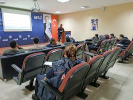 SUBÜ Doğal Afet Arama Kurtarma ve İlk Yardım Öğrenci Topluluğu’na AFAD İl Müdürlüğü tarafından afet farkındalık, insani yardım ve yangın eğitimi verildi.