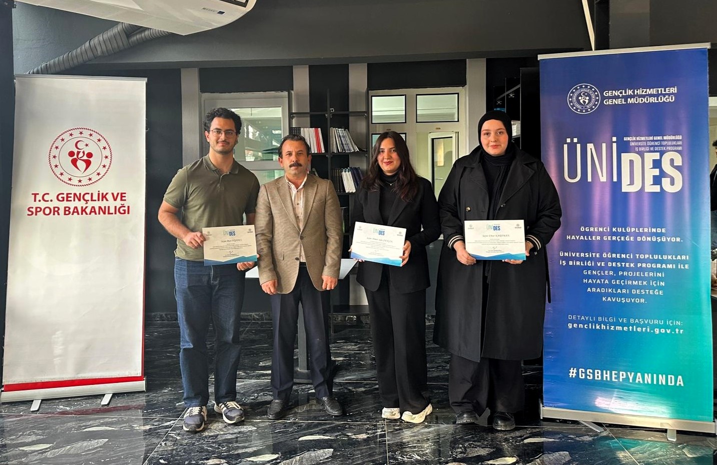 SUBÜ öğrenci toplulukları, ÜNİDES programı kapsamında hayata geçirdikleri projeler için düzenlenen törende sertifikalarını aldı.
